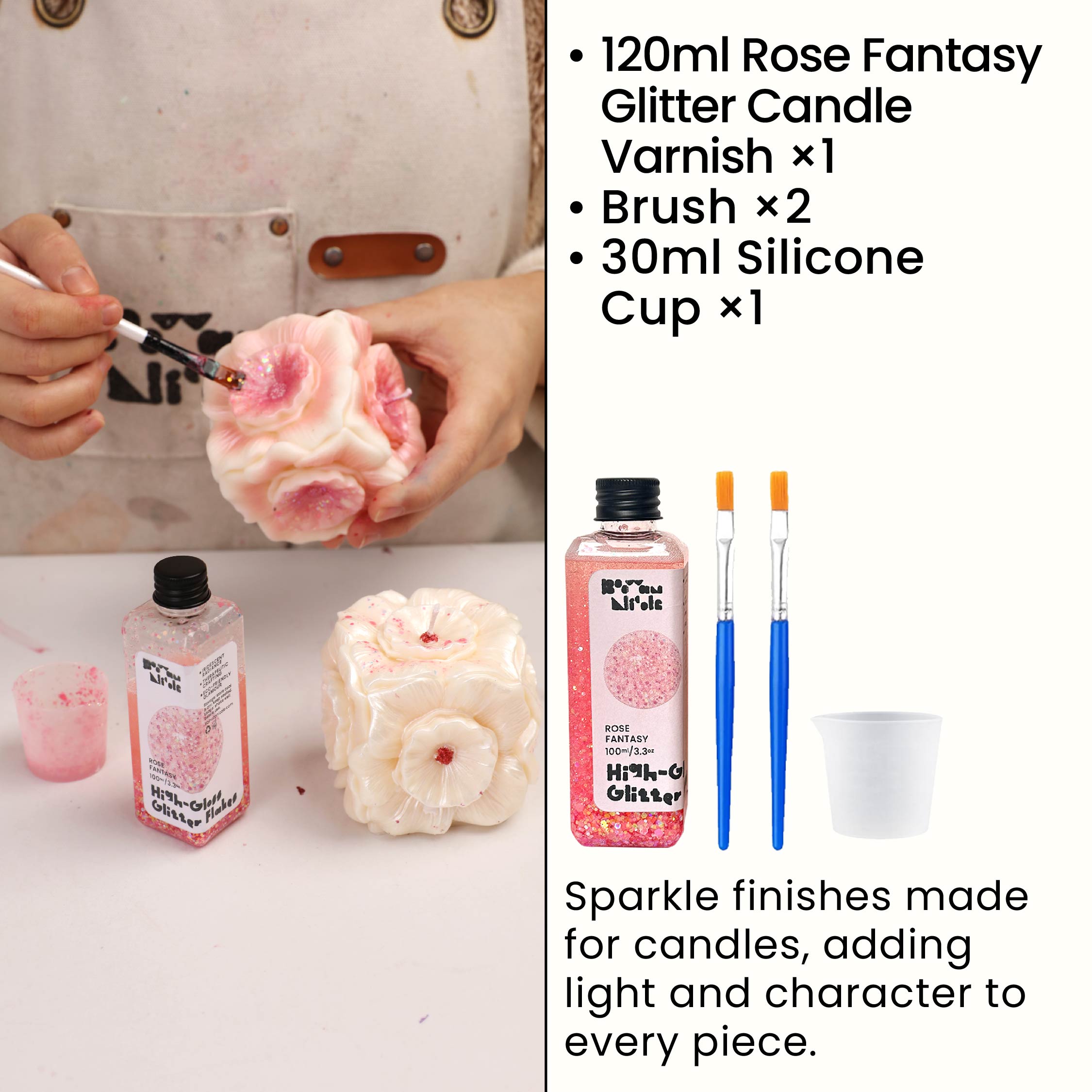 Rose Fantasy Glitter Candle Varnish Set