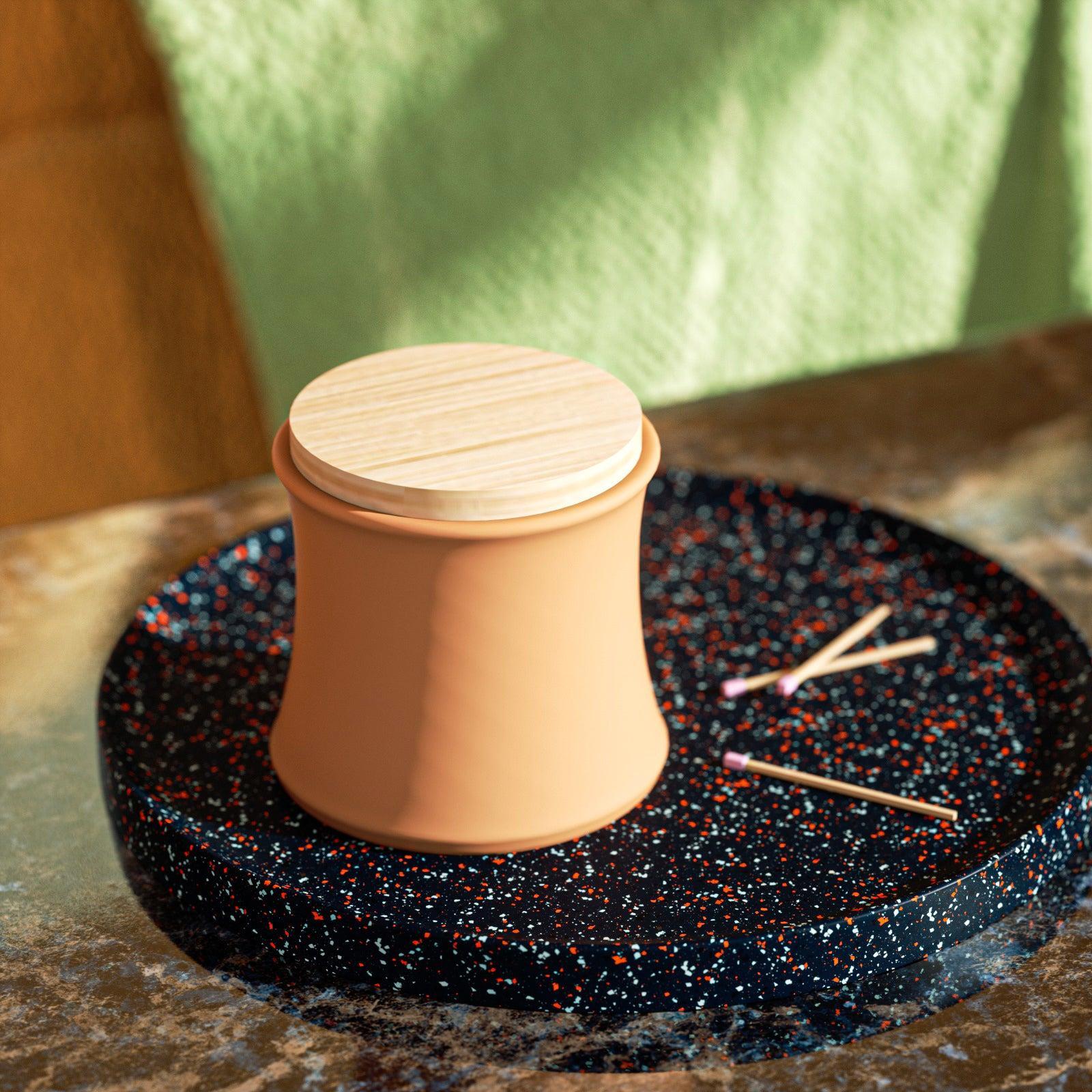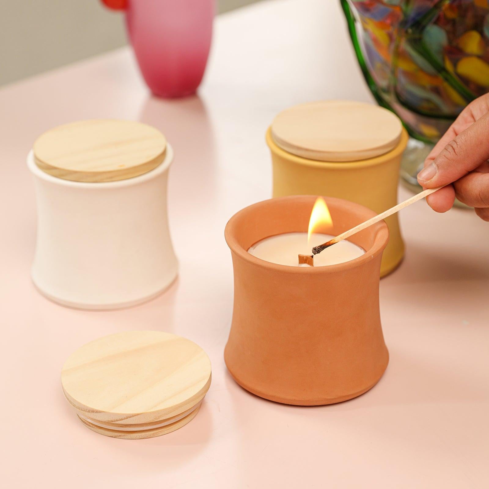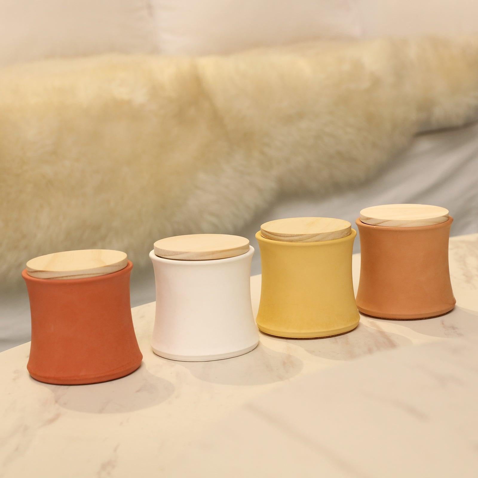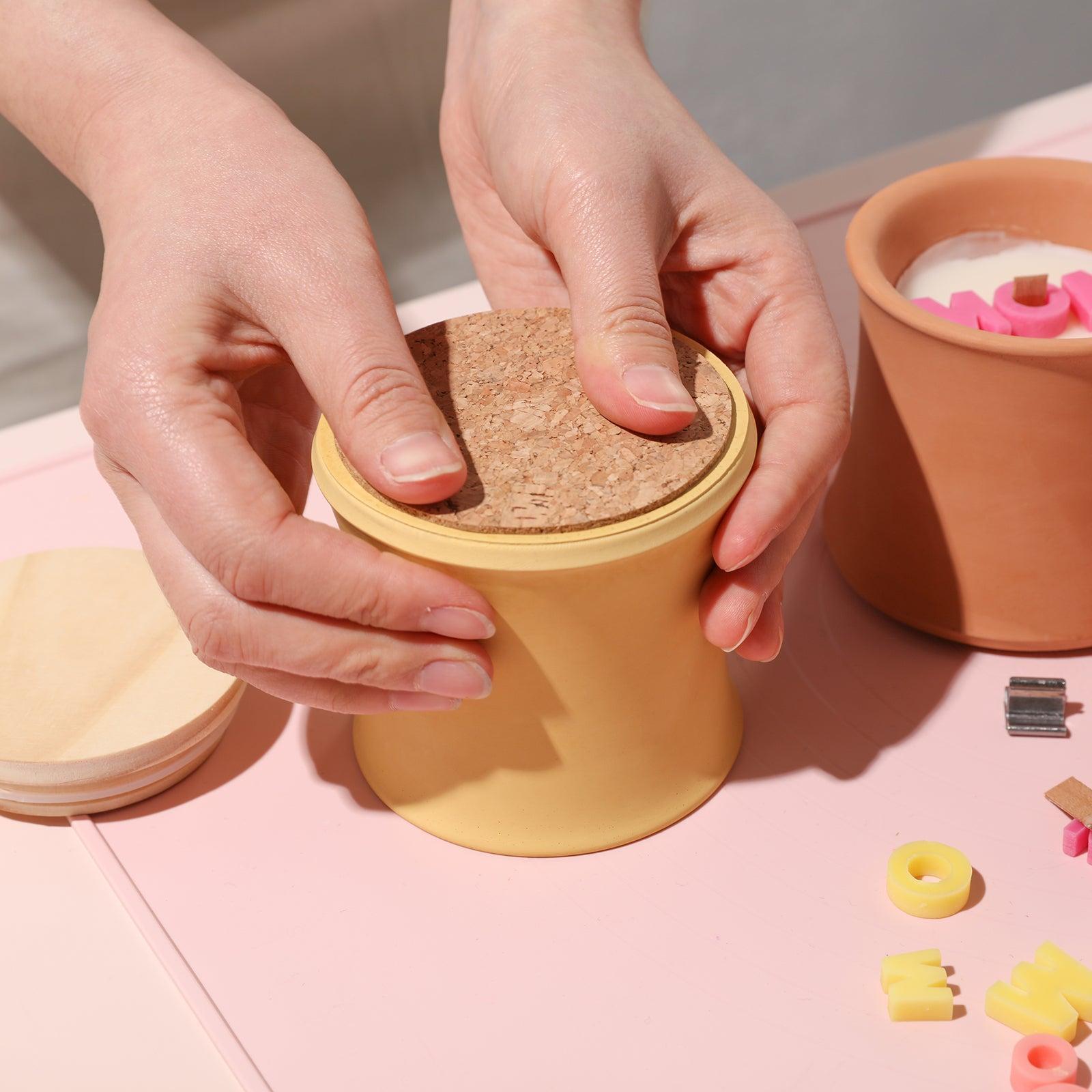 جرة شمعة بغطاء خشبي