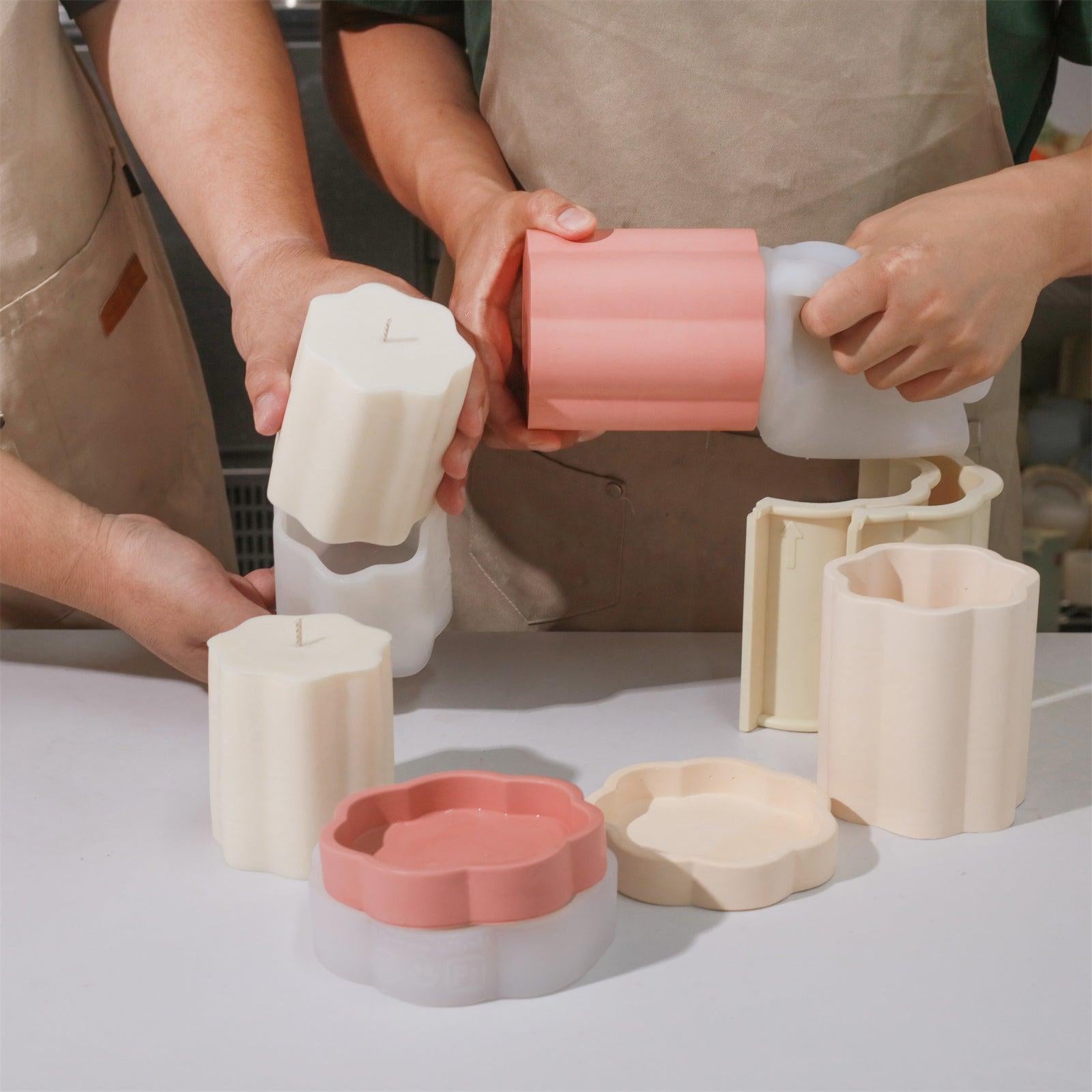 قالب سيليكون لشمعة عمود زهرية متوسطة الحجم مع قالب تعبئة شمعة 15 أونصة