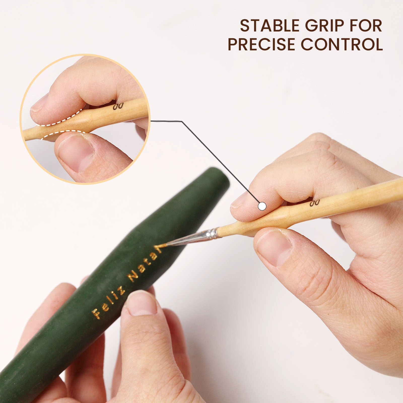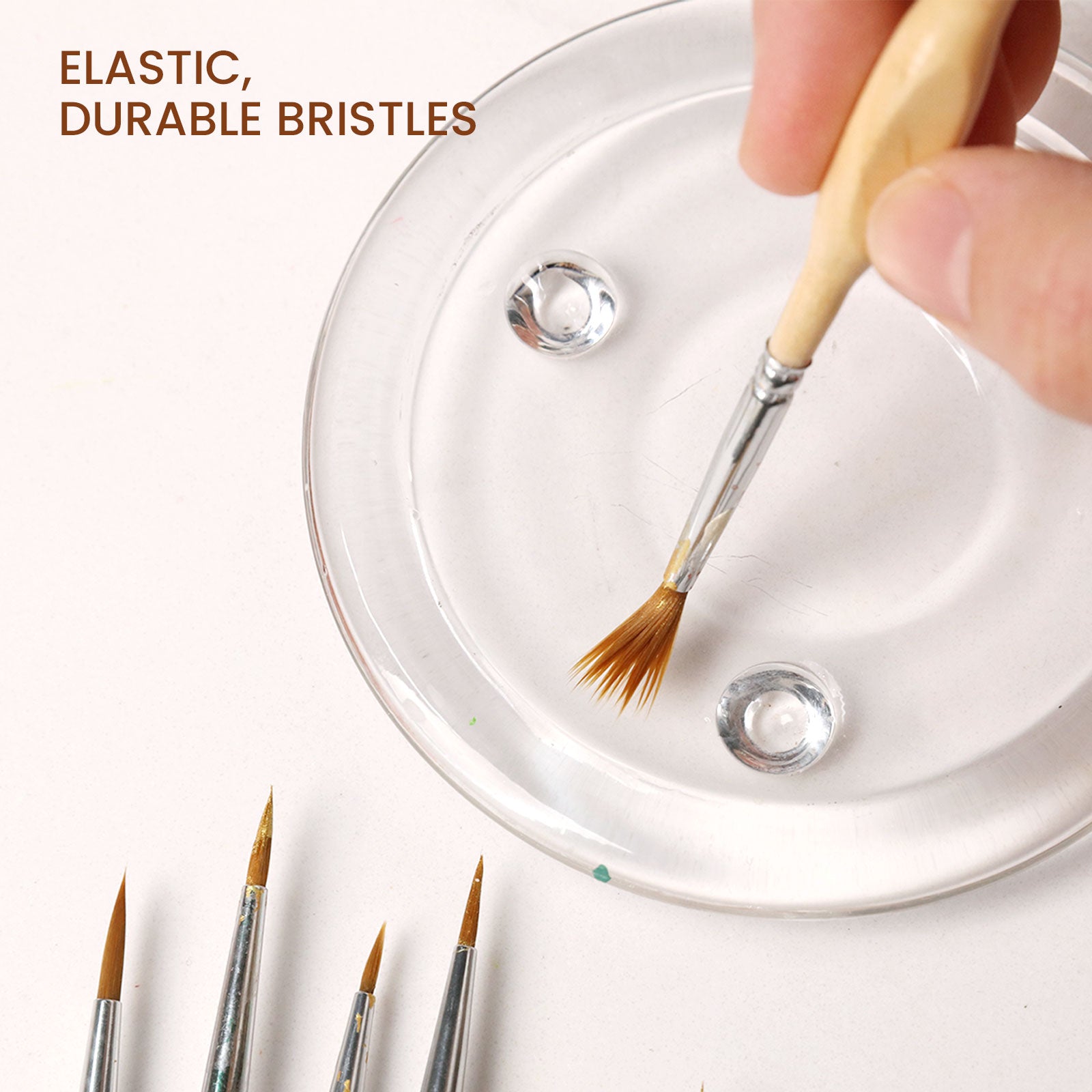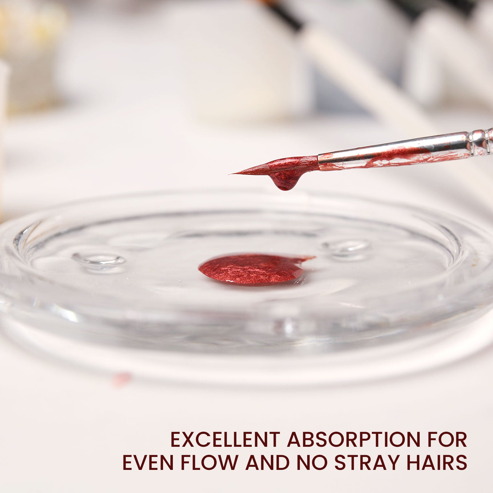 - Premium nylon bristles: great elasticity, smooth flow, even coverage, no stray hairs, precise control.