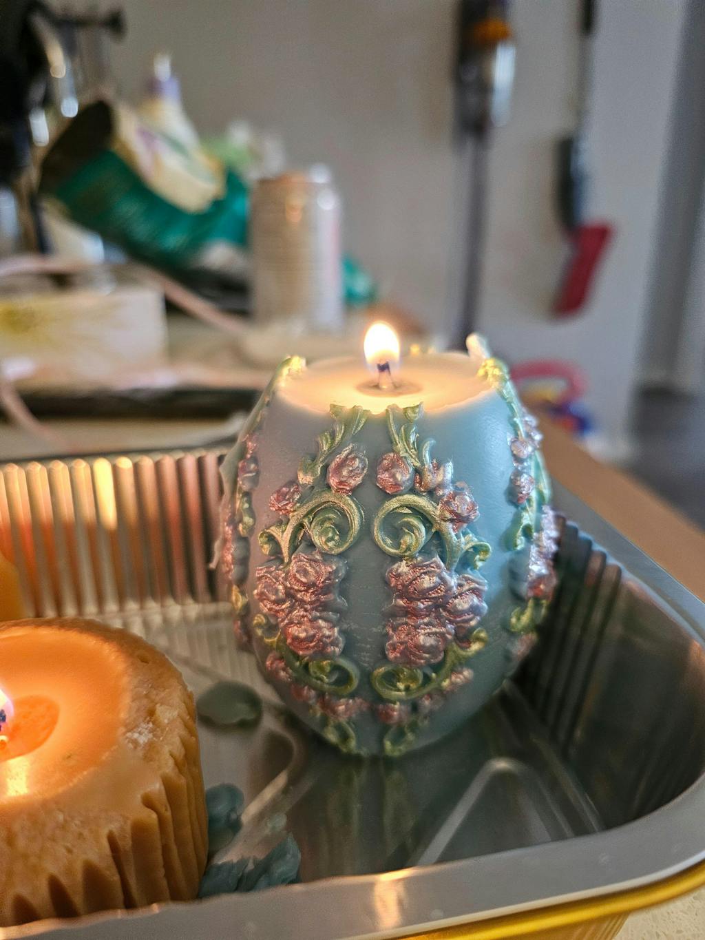 المواد المتوافقة: مناسب لمعظم أنواع الشمع ويمكن دمجه مع الرقائق والمواد الزخرفية الأخرى.