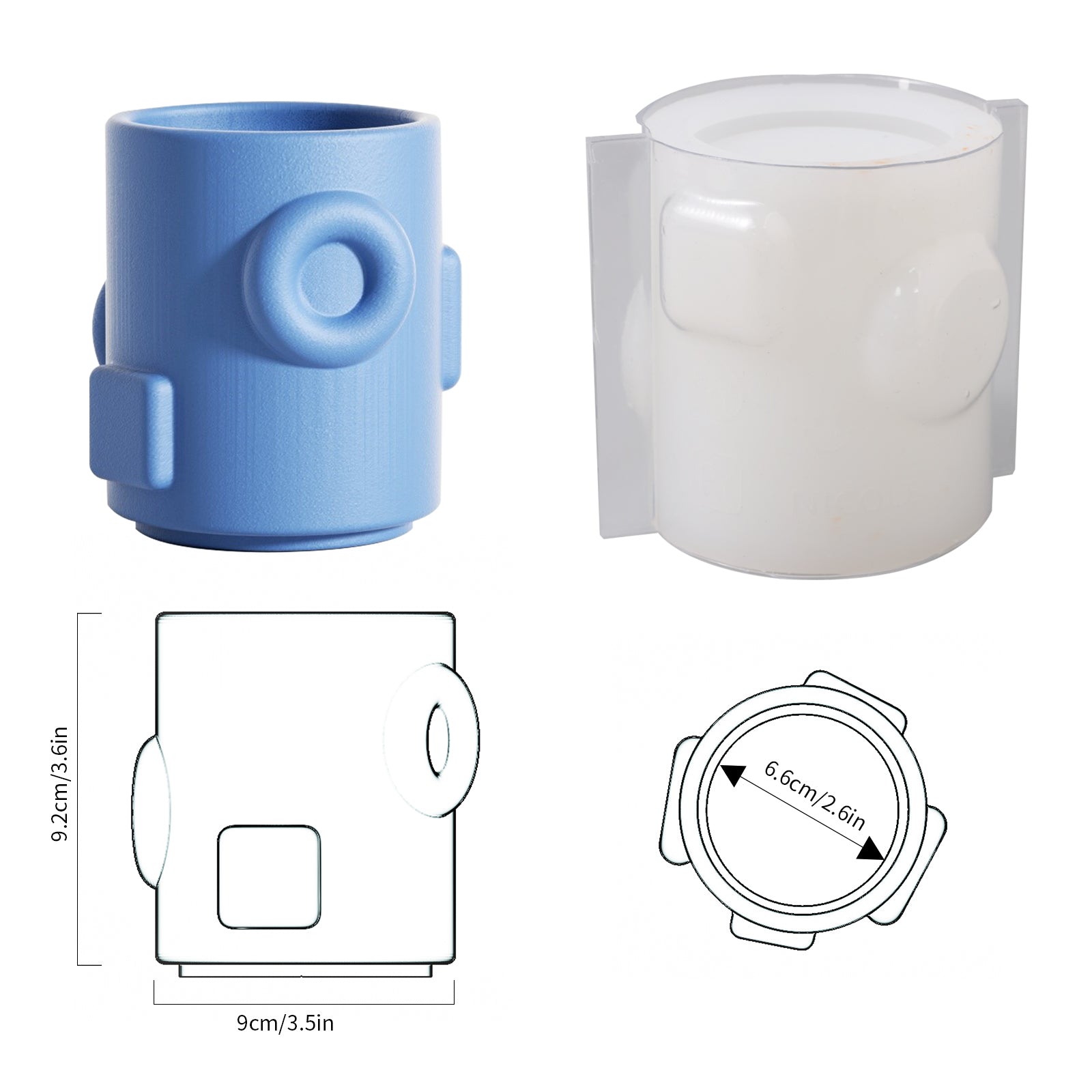 قالب سيليكون لوعاء شمعة هندسي مع غطاء