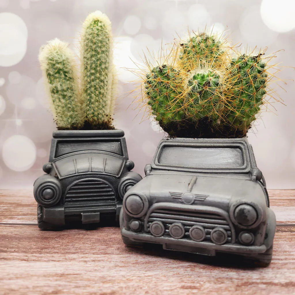 قالب سيليكون على شكل وعاء نبات سيارة بطراز قديم