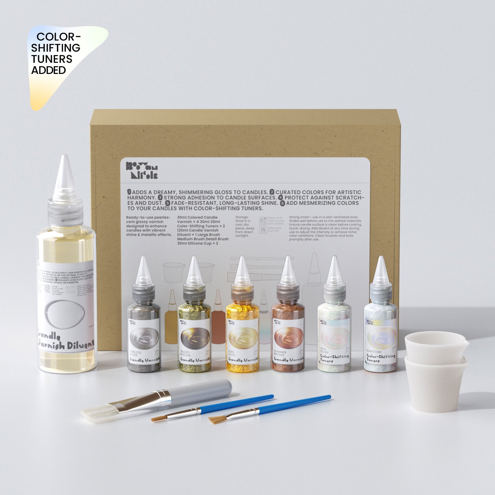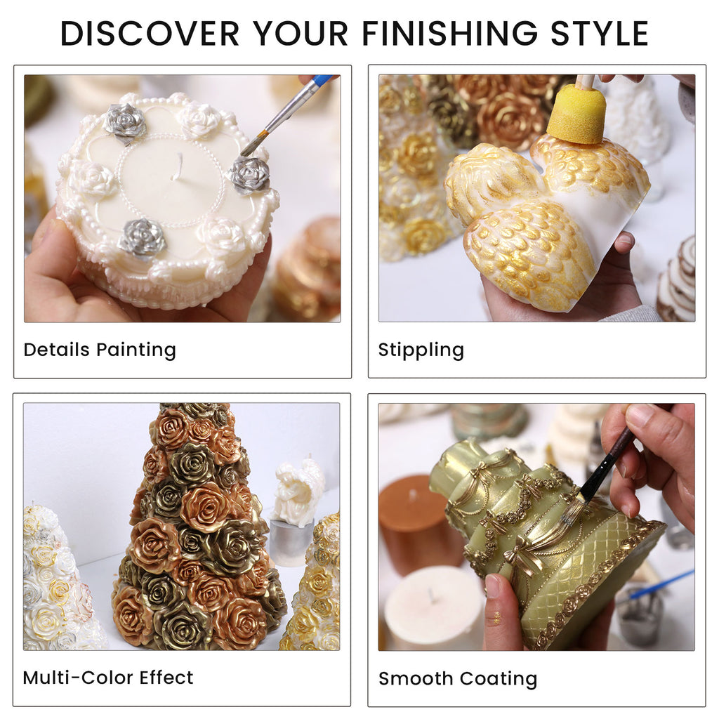 The Colored Glossy Candle Varnish is made from water-based varnish blended with natural mineral pigments. Designed for artistic surface finishing, it delivers a smooth, luminous effect with strong adhesion and fast drying. Safe for burning—non-flammable, odorless, and smoke-free when the candle is lit.
