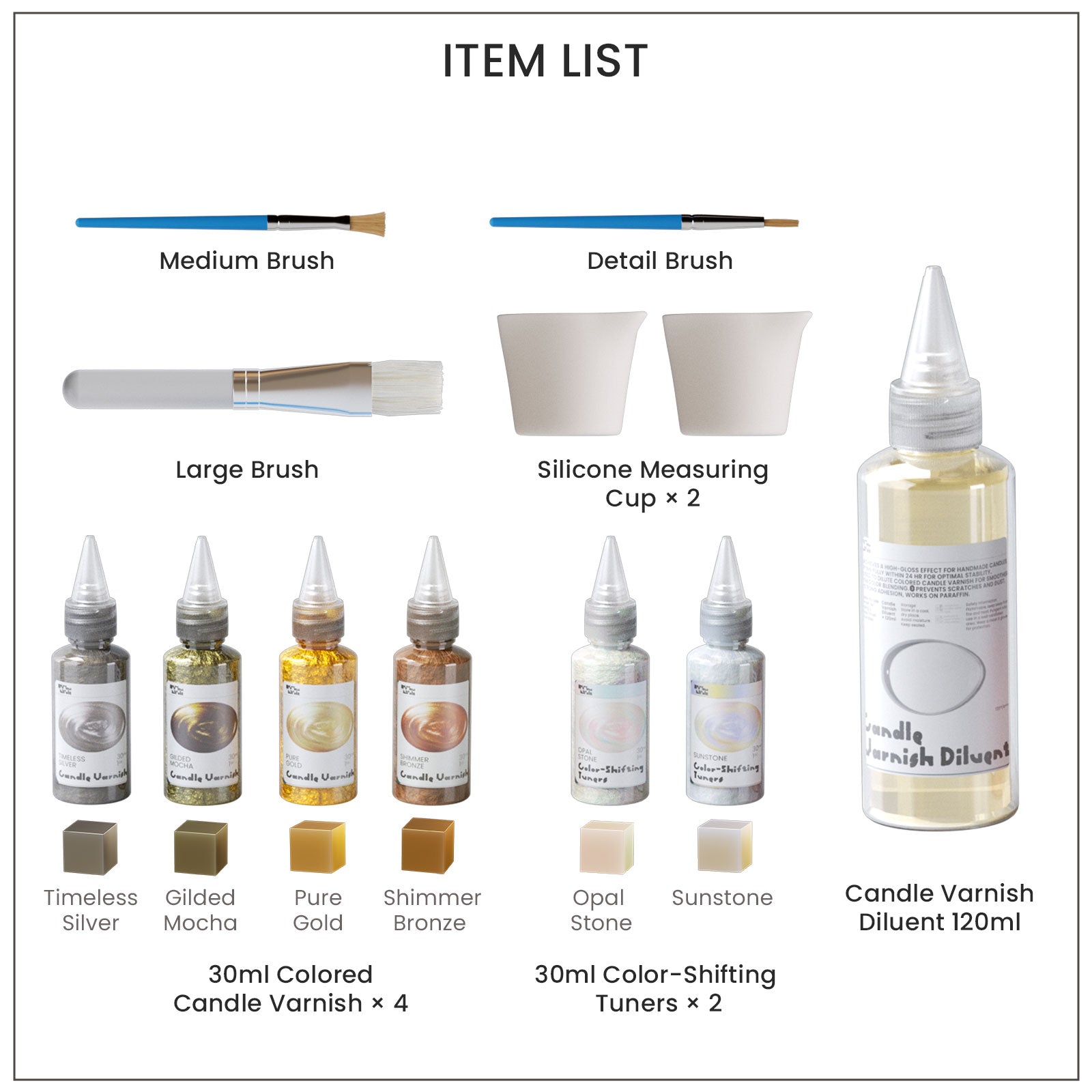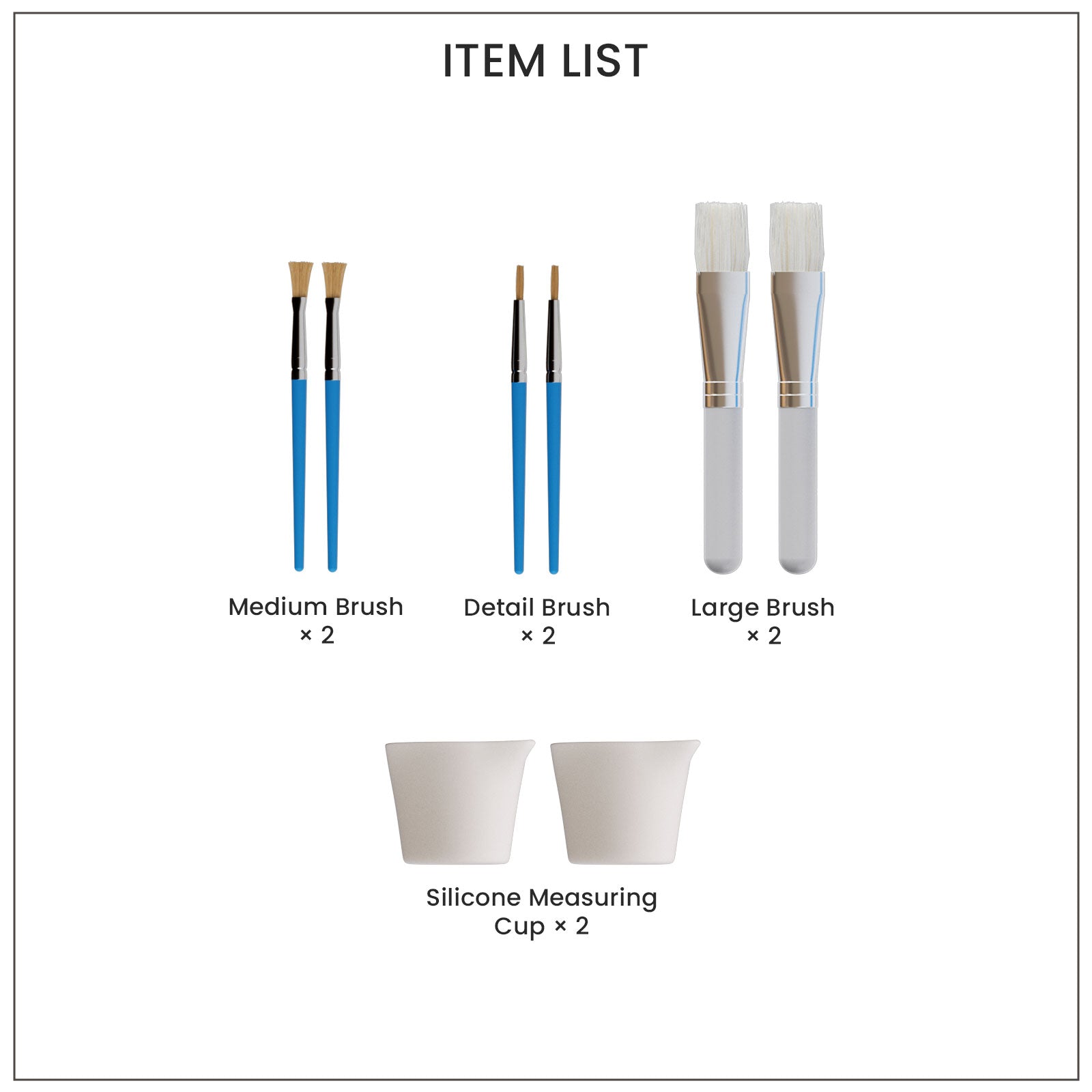 • 30ml Silicone Cup * 2  – For mixing multiple color variations.