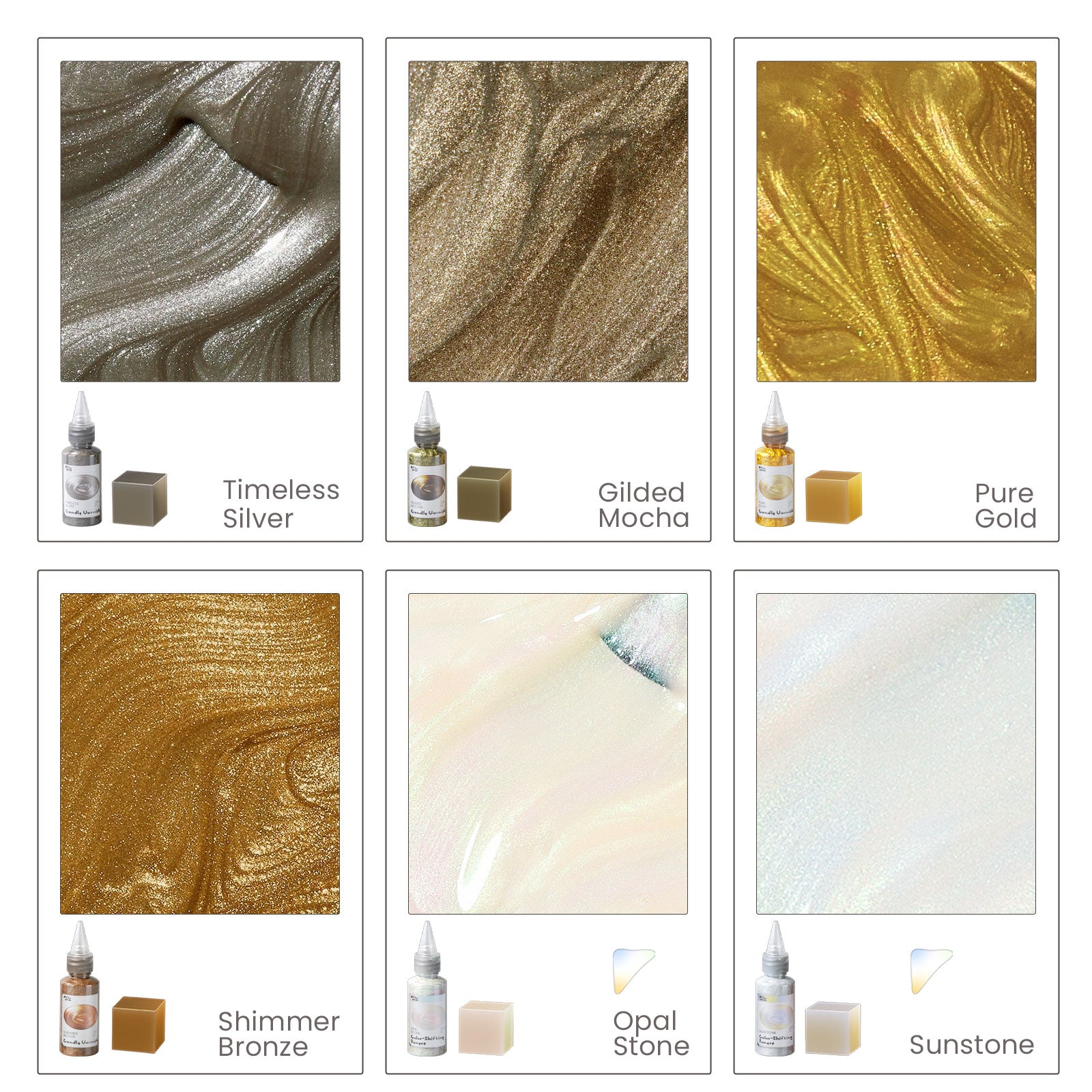 Colored Glossy Candle Varnish Set - 4 Celebration Shine & 2 Chameleon Colors