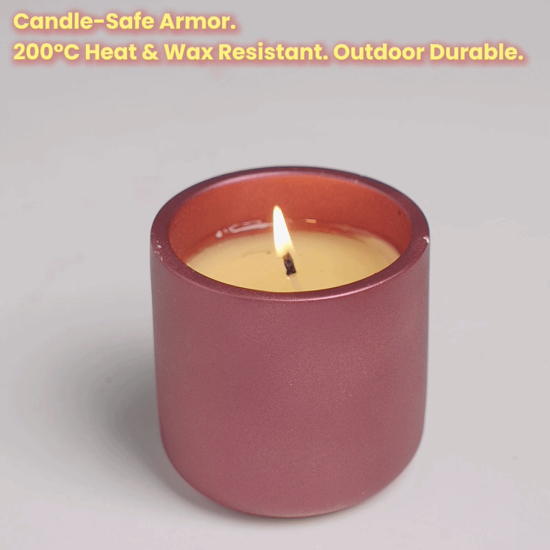 The coating offers excellent heat resistance and is suitable for decorative use on candle containers.