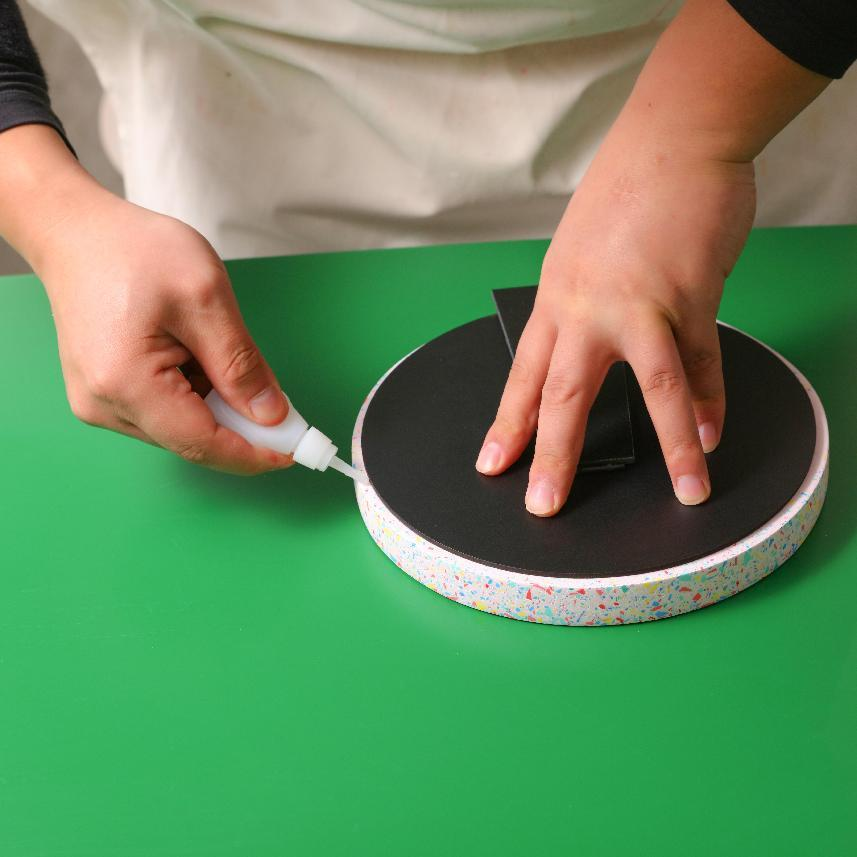 Step 2: Put the mirror glass in the mold and then put in the foam board. Next, add some glue to the foam and put in the support. Finally, seal the support with glue.
