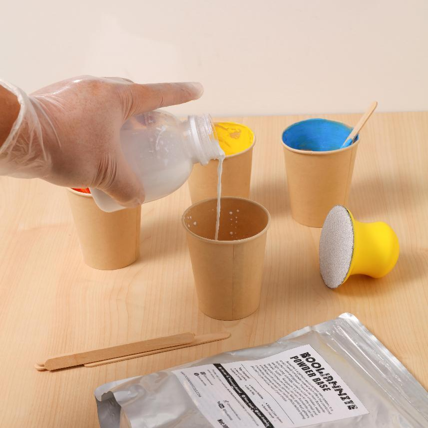 Step 3: Prepare Boowannite, pour the powder base into a paper cup, then add liquid. Mix them with a wooden stick. This is something you can make more of and keep on hand for future use.