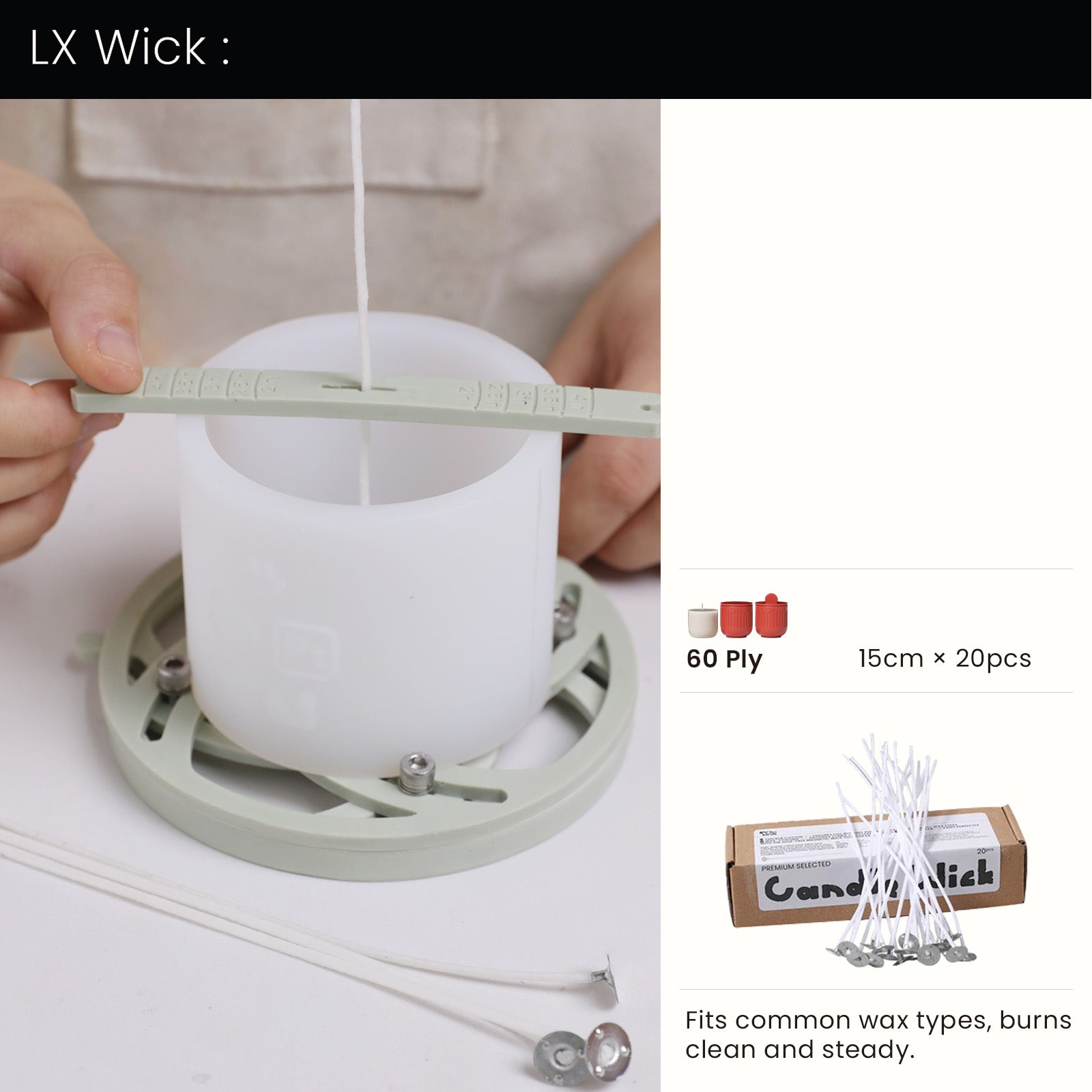 • Cree fácilmente velas de recarga para que encajen dentro de los recipientes.