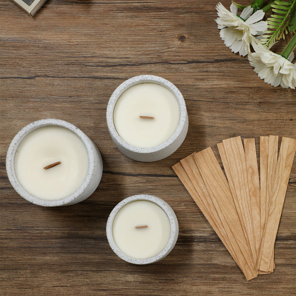 El ancho de la mecha de madera afecta el tamaño de la llama y la difusión de la fragancia. Por favor, seleccione un tamaño apropiado según el diámetro de su recipiente y el tipo de cera.