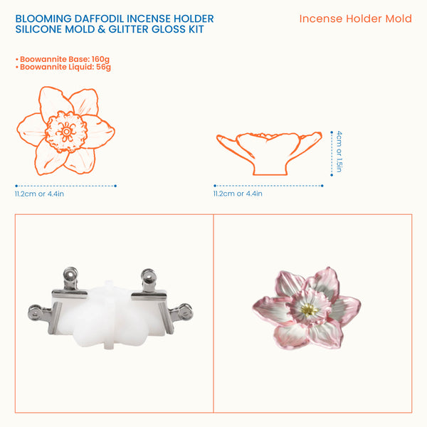 Molde de silicona para porta incienso de narciso en flor y kit de brillo gloss