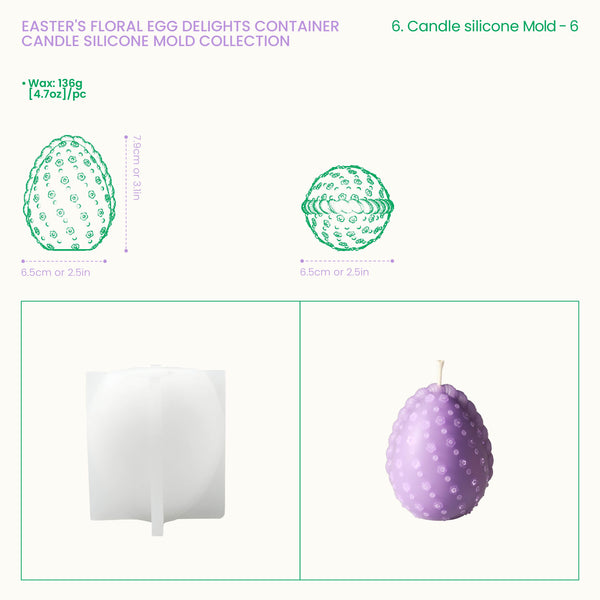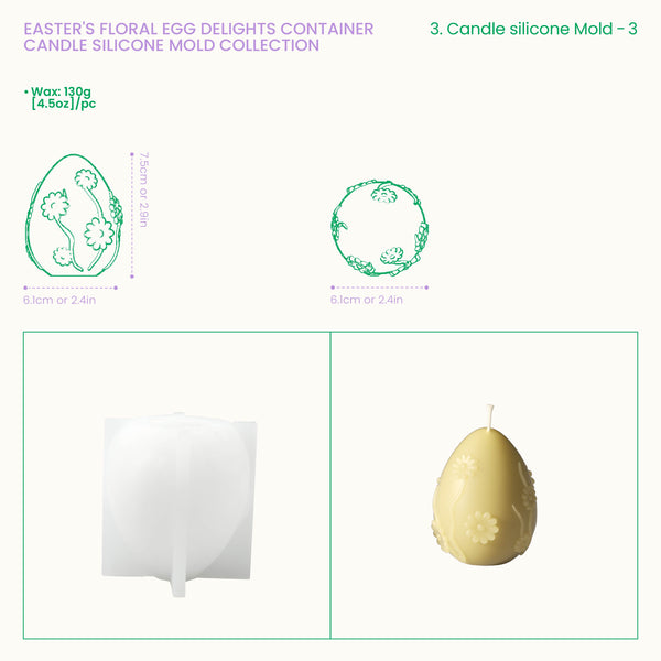 Molde de silicona para vela en recipiente con forma de huevo floral de Pascua colección
