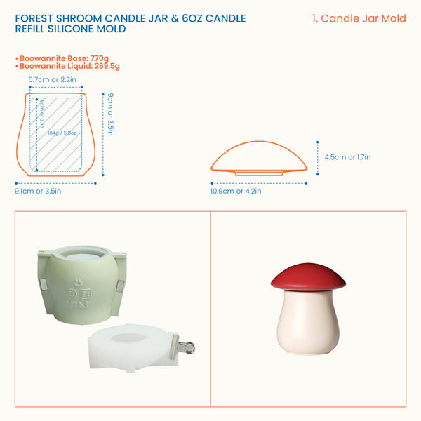 Molde de silicona para vela recargable de 6oz y tarro de vela Forest Shroom