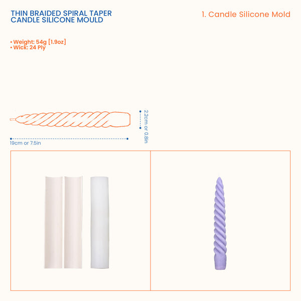 Molde de silicona para vela cónica en espiral trenzada delgada
