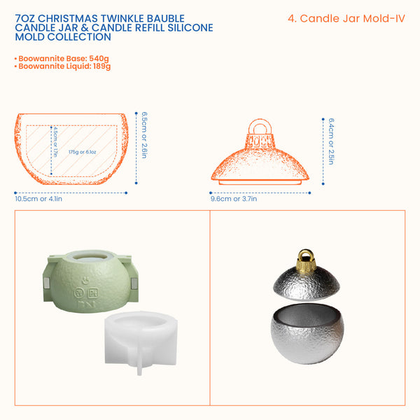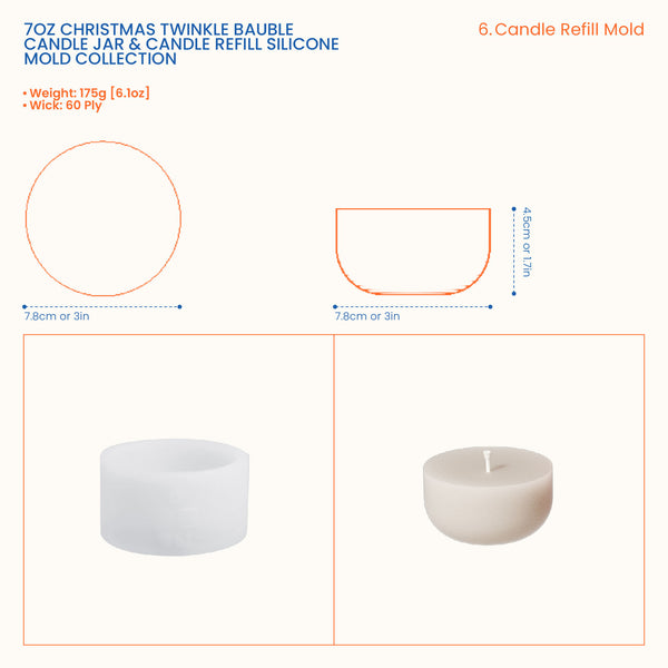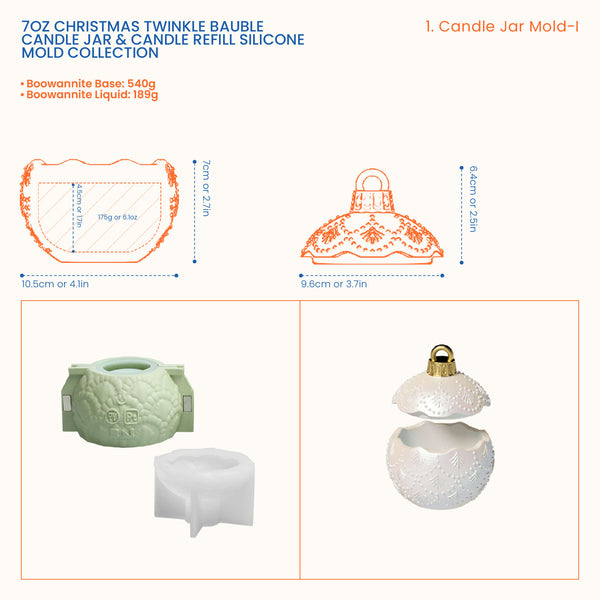 Collection de pots à bougies et de moules en silicone « Boules de Noël scintillantes » de 200 g et de recharges pour bougies