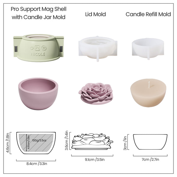 Collection de moules en silicone et de moules de recharge pour pot de bougie Crowning Rose