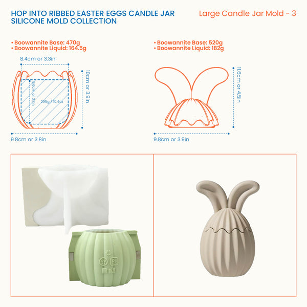 Bring the charm of spring into your craft room with our Ribbed Bunny Egg Silicone Mold. This high-quality mold features a modern vertical ribbed texture and a whimsical bunny-ear lid, allowing you to create elegant, professional-grade candle jars or storage containers that capture the essence of Easter.
