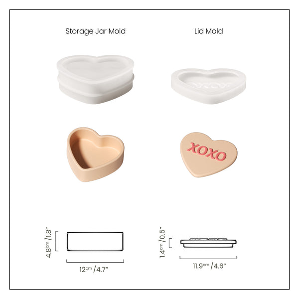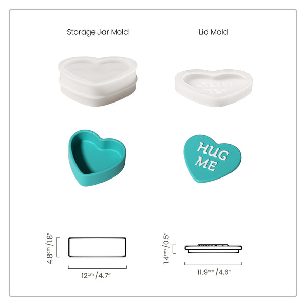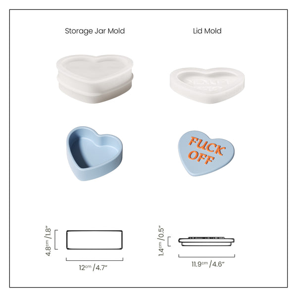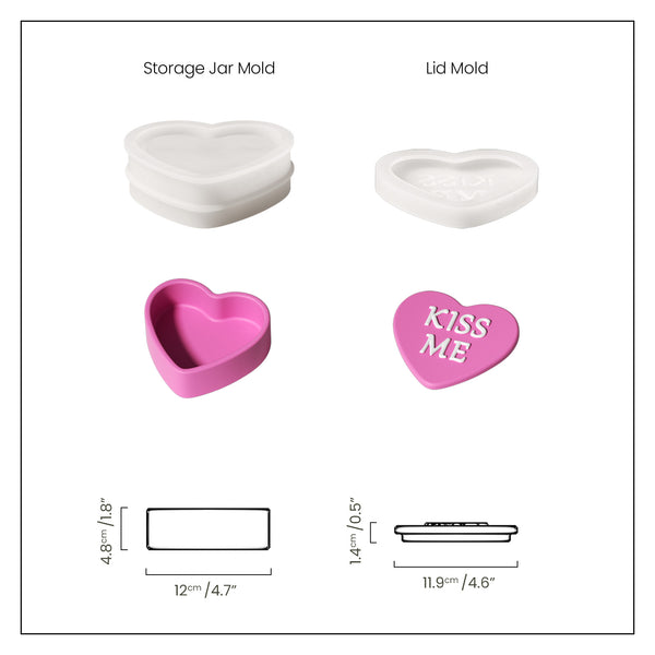 Collection de moules en silicone pour bocaux de rangement en forme de cœur avec des notes d'amour ludiques