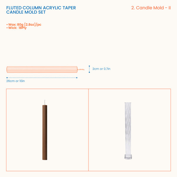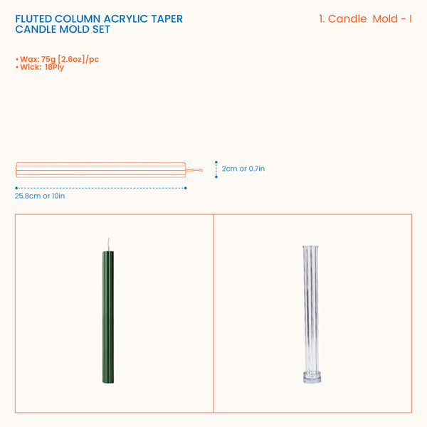 フルーテッドコラムアクリルテーパーキャンドルモールドセット