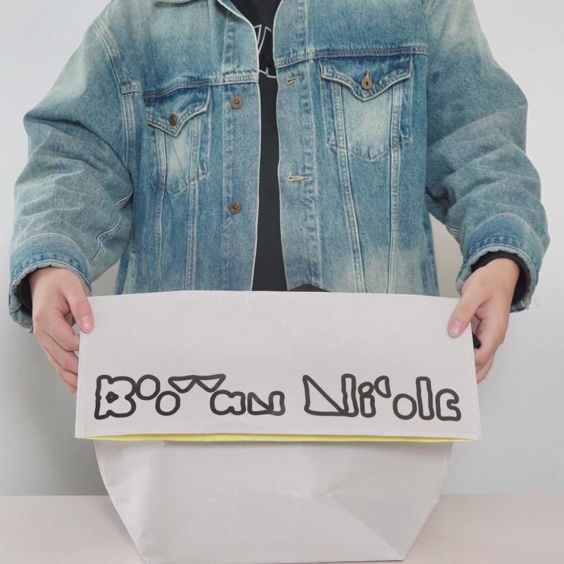 100%リサイクル可能な耐水紙で作られた、この驚くほど丈夫な多目的トートは、私たちの小さなムーブメントの宣言です。スタジオ、市場、公園へ持ち運んでください:軽くて気軽に使えるバッグで、Boowan Nicoleが大切にしている意識的なデザイン、手作りの精神、アウトドアのひととき、そして地球への優しい足跡を反映しています。