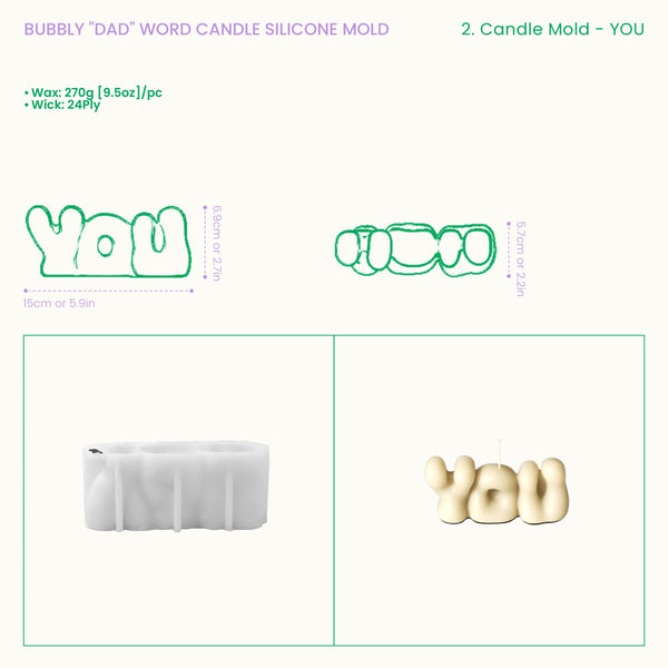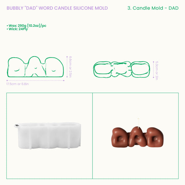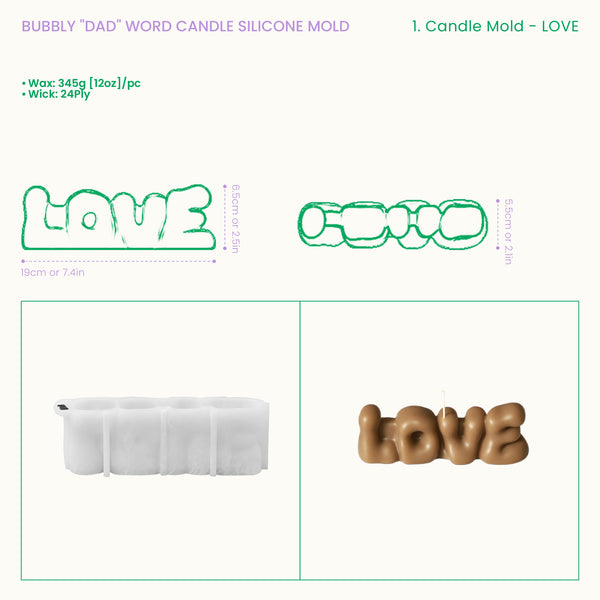 Bubbly LOVE YOU DAD Word Candle Silicone Mold