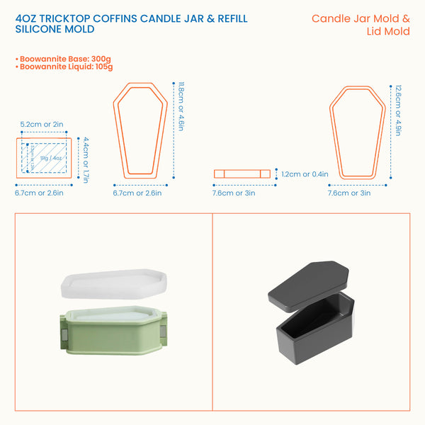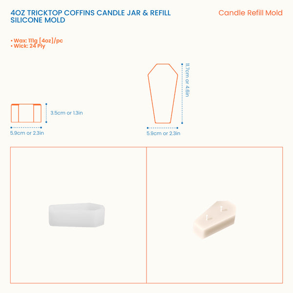 4oz Tricktop Coffins Candle Jar & Refill Silicone Mold