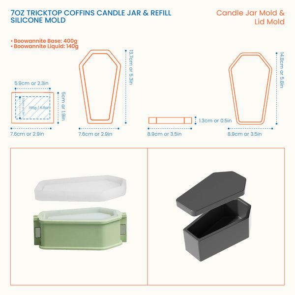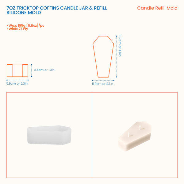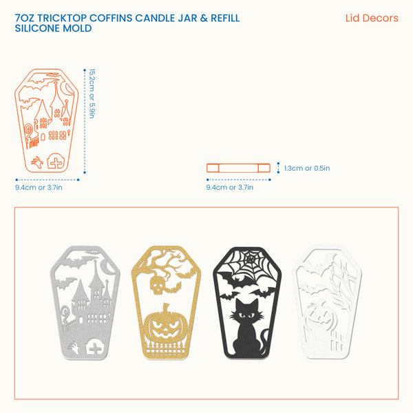 7oz Tricktop Coffins Candle Jar & Refill Silicone Mold