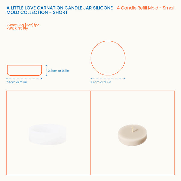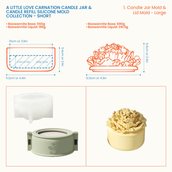 A Little Love Carnation Candle Jar & Candle Refill Silicone Mold Collection - Short