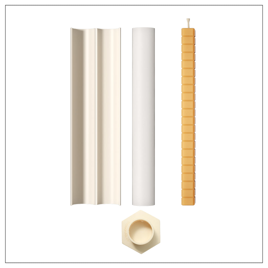 Infuse your candle creations with modern geometric aesthetics! The Cubis Taper Candle collection features three uniquely shaped taper candle molds, inspired by sculptural lines and cubic structures. Designed with home decor in mind, each mold comes with a supportive outer shell to prevent deformation during pouring, ensuring your finished candles are sleek, structured, and visually striking—perfect for crafting high-quality handmade taper candles.