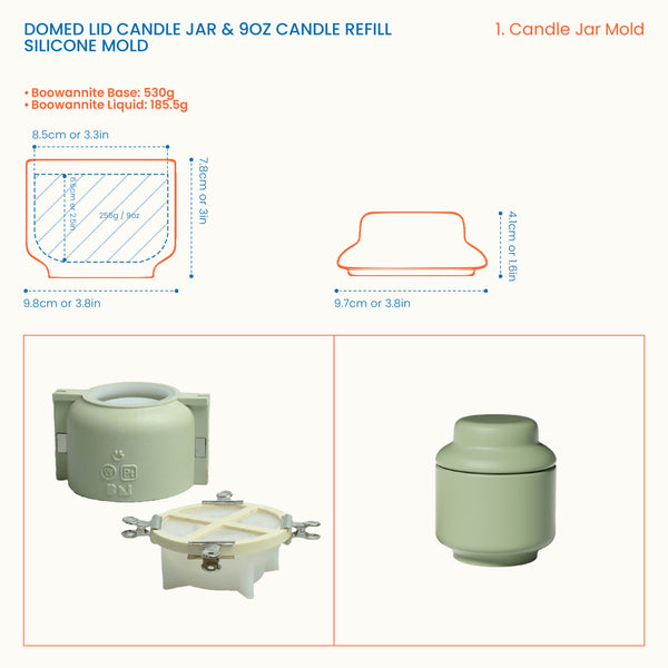 Forma de Silicone para Vela em Pote com Tampa Arredondada e Refil de Vela de 9oz
