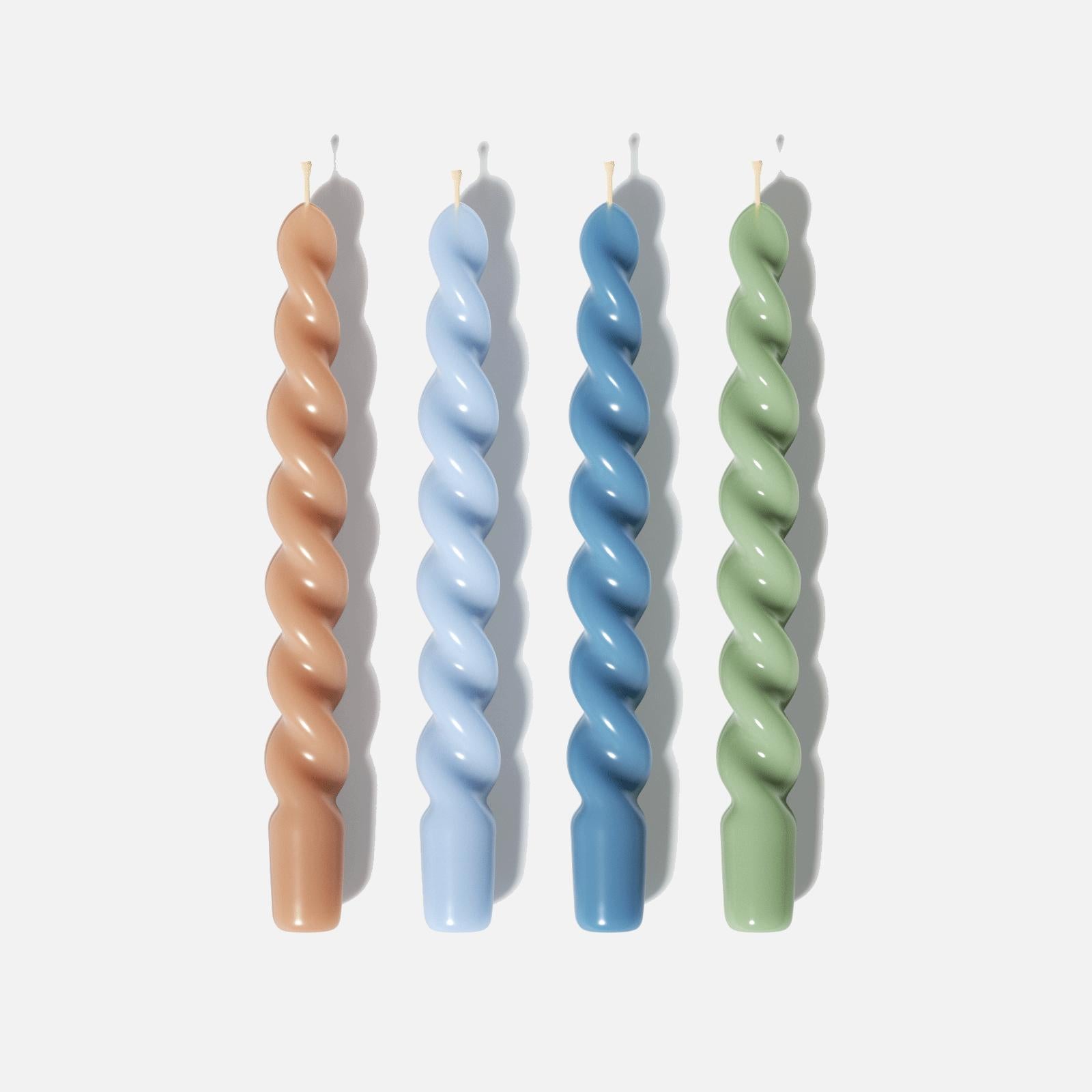 PLAY Spiral Taper Candle - Набор из 4-х - Мокко, Небесно-голубой, Глубокий океанский синий и Весенне-зеленый
