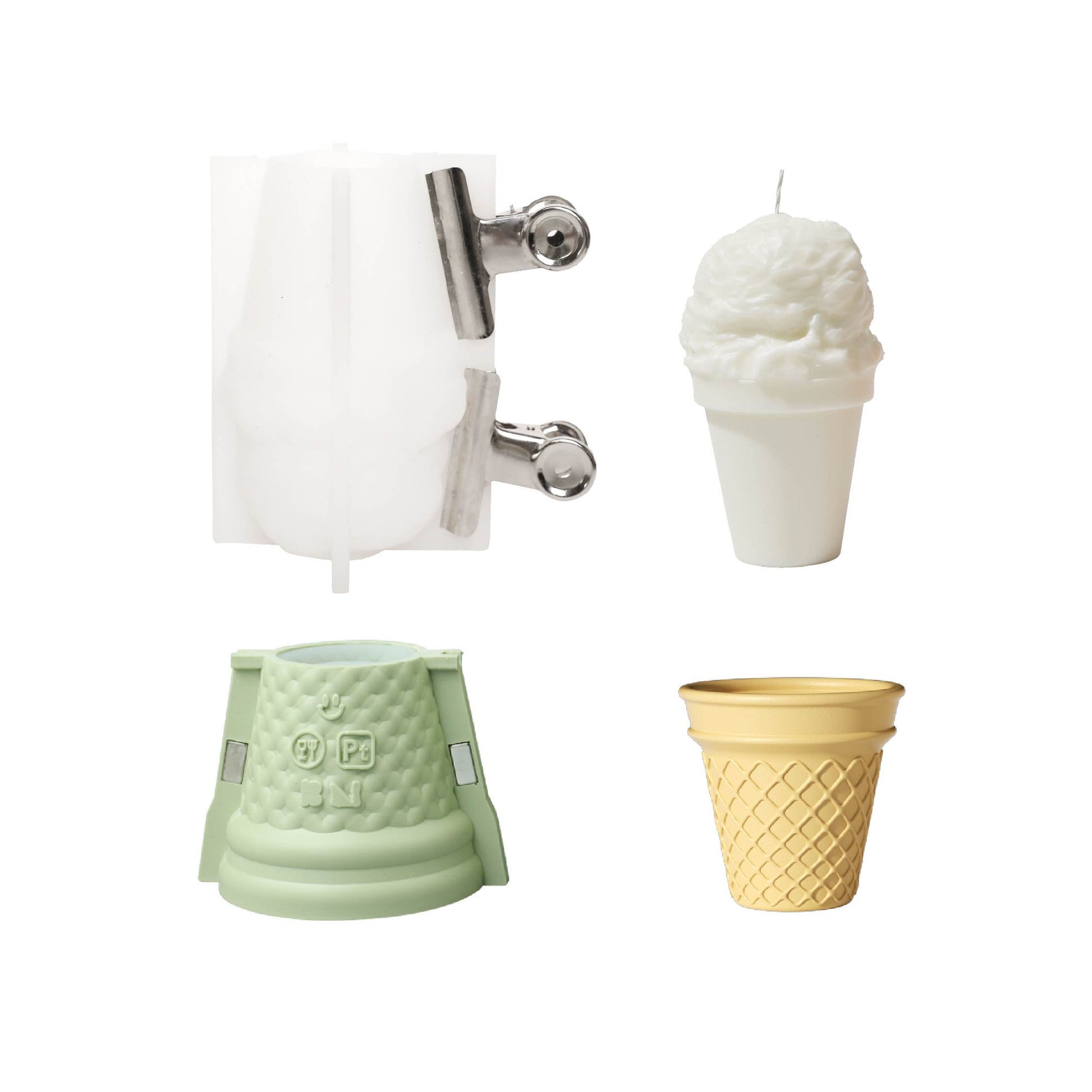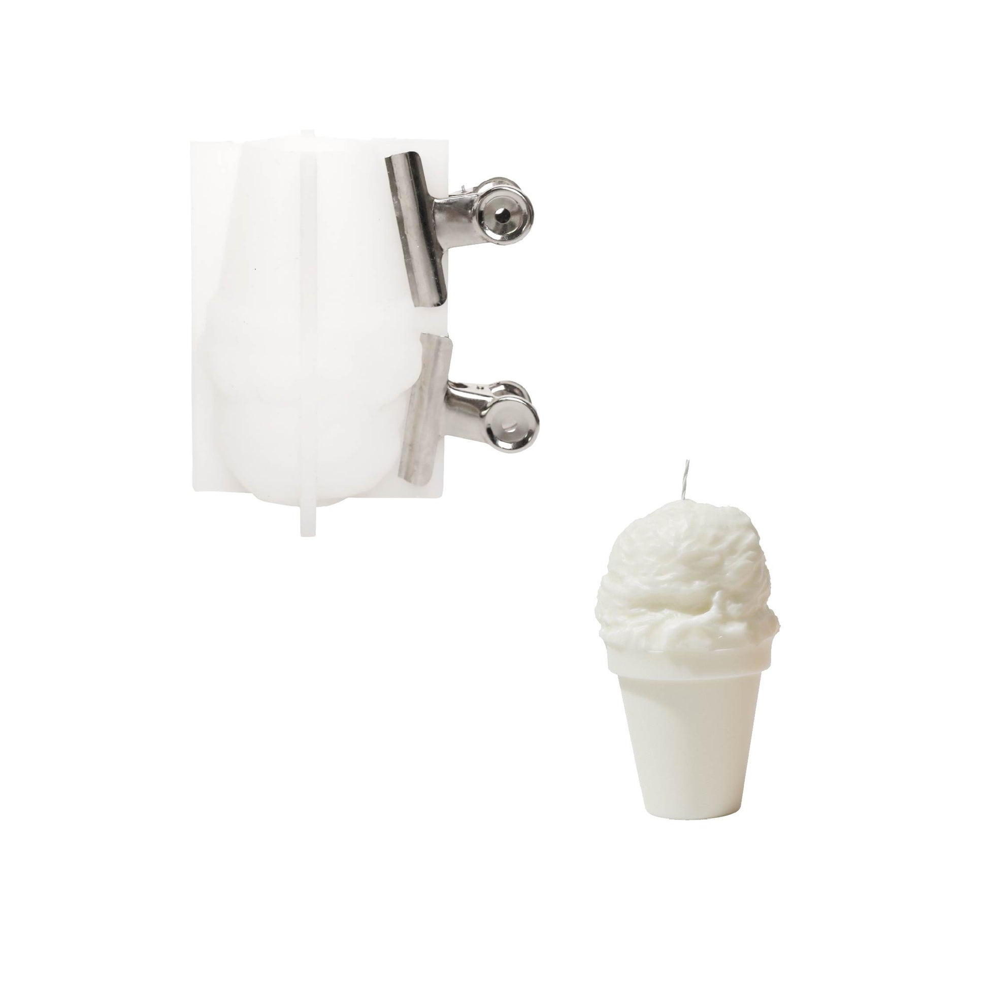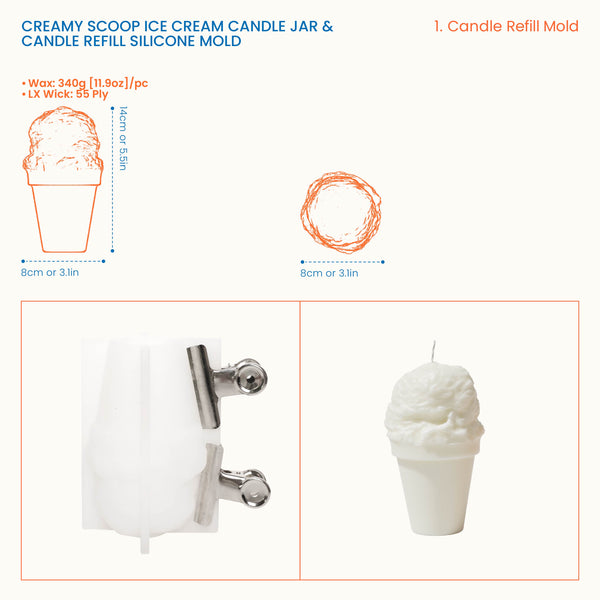 Формочка из силикона для свечи в виде кремового мороженого в банке и сменной свечи